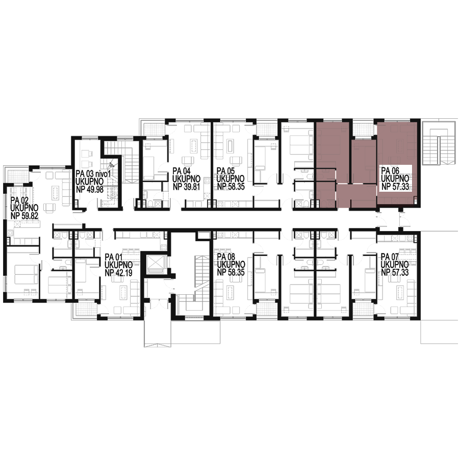 Stan / Dvoiposoban / 57.33m2 / PR / Broj PA.06