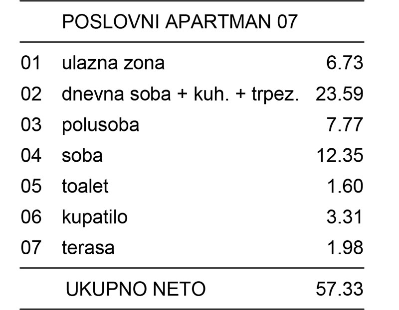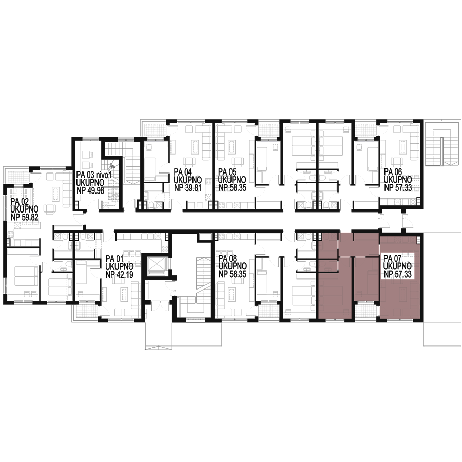Stan / Dvoiposoban / 57.33m2 / PR / Broj PA.07